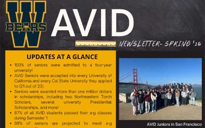 Being part of AVID will challenge students to succeed in more academically rigorous classes. Students in AVID will also benefit from tutoring sessions that are led by college students, dynamic guest speakers, team-building activities and field trips to local colleges and universities.