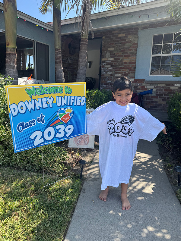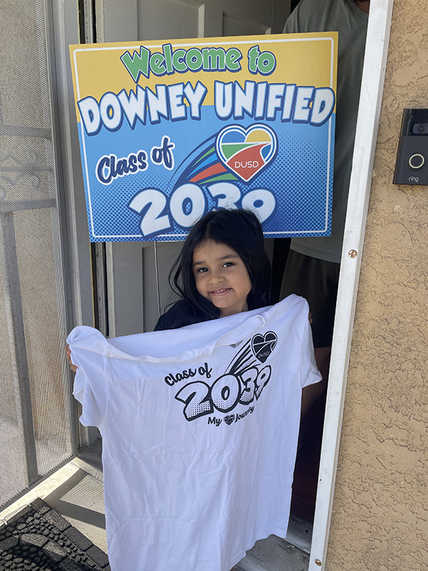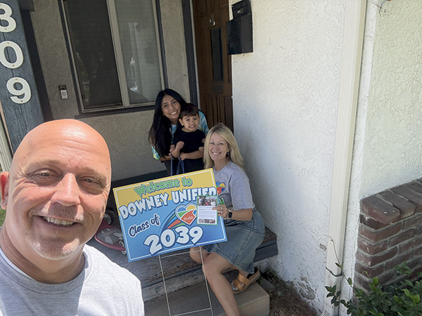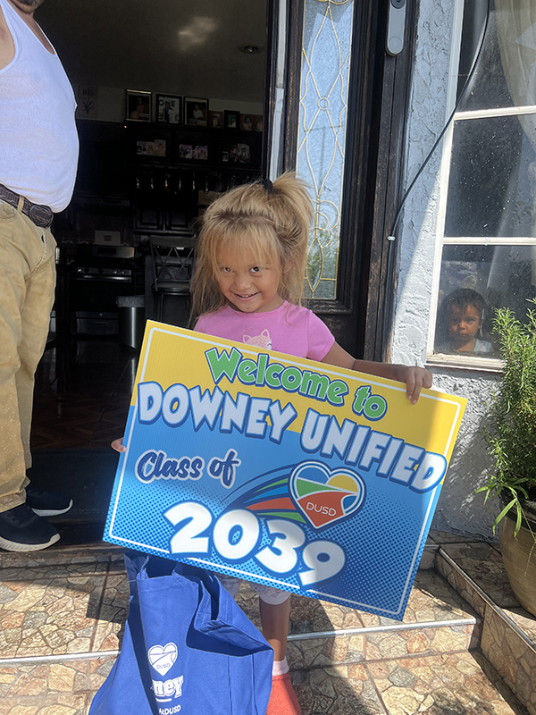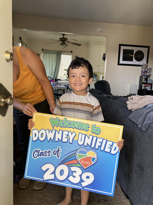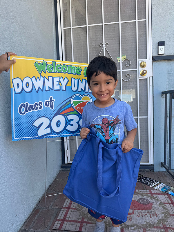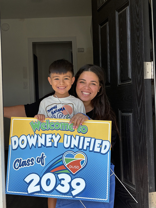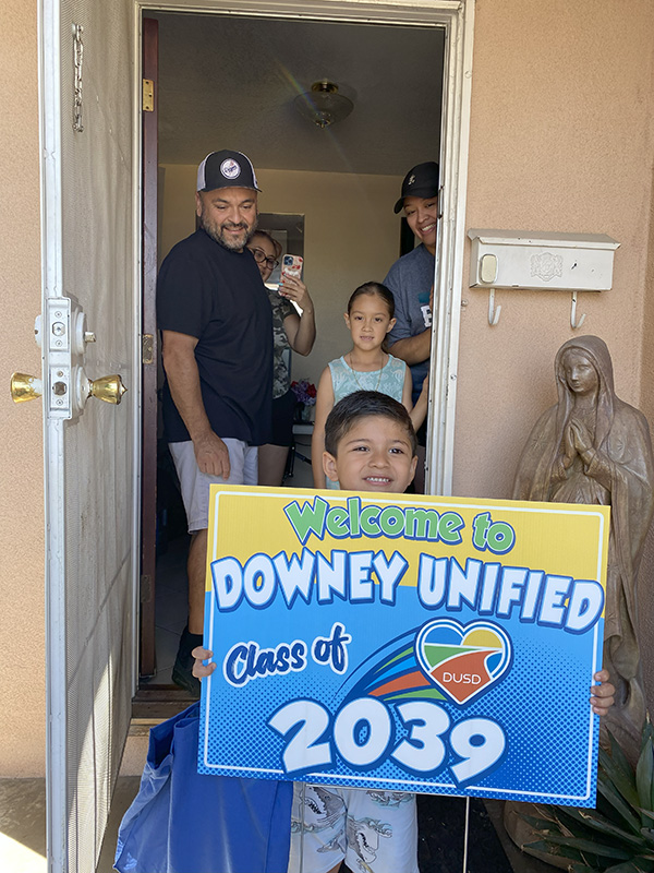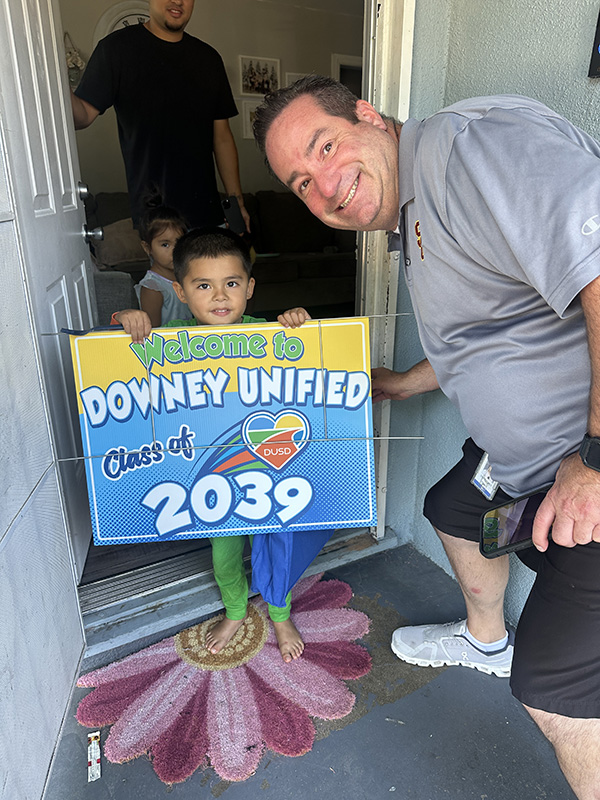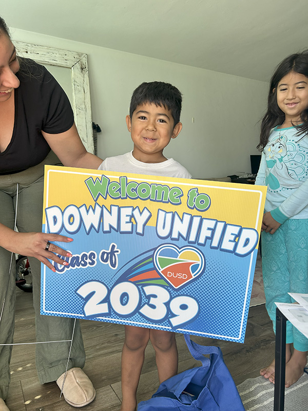 Three years ago, a heartwarming tradition began in Downey Unified—one that has quickly become a favorite among our principals, administrators, and families alike. Each year, just before the school year begins, our leadership team personally visits incoming Transitional Kindergarten (TK) students to welcome them into the Downey Unified family.