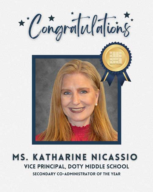 Doty Middle School is proud to announce that our very own vice principal, Ms. Katharine Nicassio, has been honored as the 2025 ACSA Region 14 Secondary Co-Administrator of the Year!