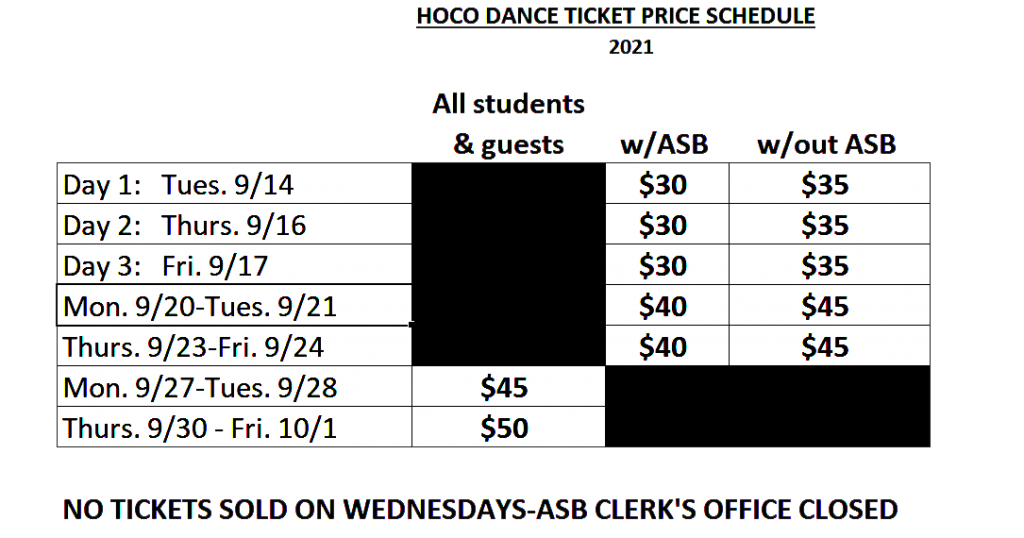Homecoming is a dance for all grade levels. It will be held on Saturday October 2nd. This long-awaited dance is finally around the corner and tickets go on sale starting on 9/14. (See pricing below). They will be discounted for the first couple of days. Our event will be hosted outdoors, on campus. It will be safe, lots of fun and memorable.