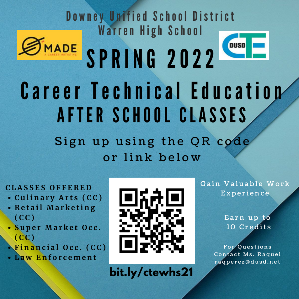 SIGN UP NOW to be enrolled in a CTE After School Class.