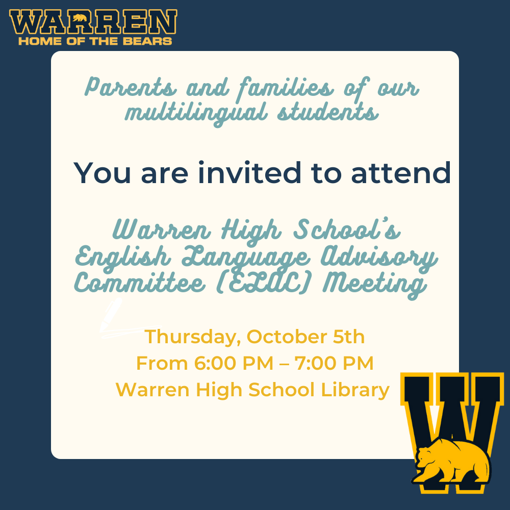 ELAC Meeting Sep 28, 2023 | News & Announcements Join us for our next ELAC Meeting on Thursday 10/5 in the WHS Librray from 6-7pm.