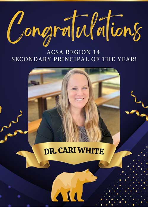 Warren High School is proud to announce that our very own principal, Dr. Cari White, has been honored as the 2025 ACSA Region 14 Secondary Principal of the Year! This prestigious award, presented by the Association of California School Administrators (ACSA), recognizes outstanding school leaders who provide high-quality learning opportunities for students and make exemplary contributions to the profession.