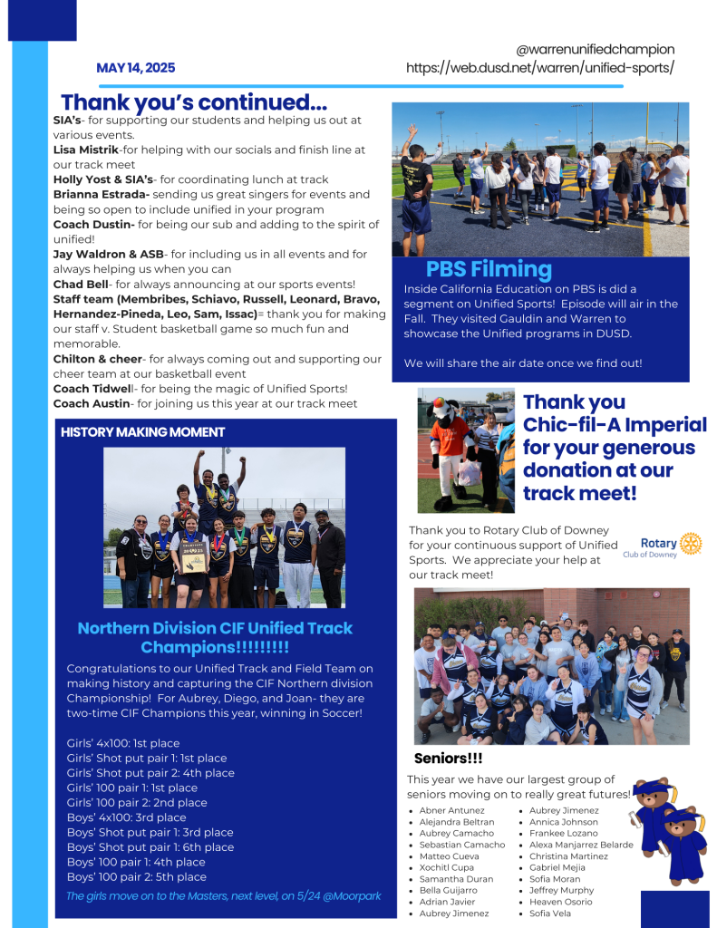 The 2024-2025 has been one amazing year! It is difficult to capture all of the magic, but here are our biggest history making moments and “Thank you’s” to everyone involved!
