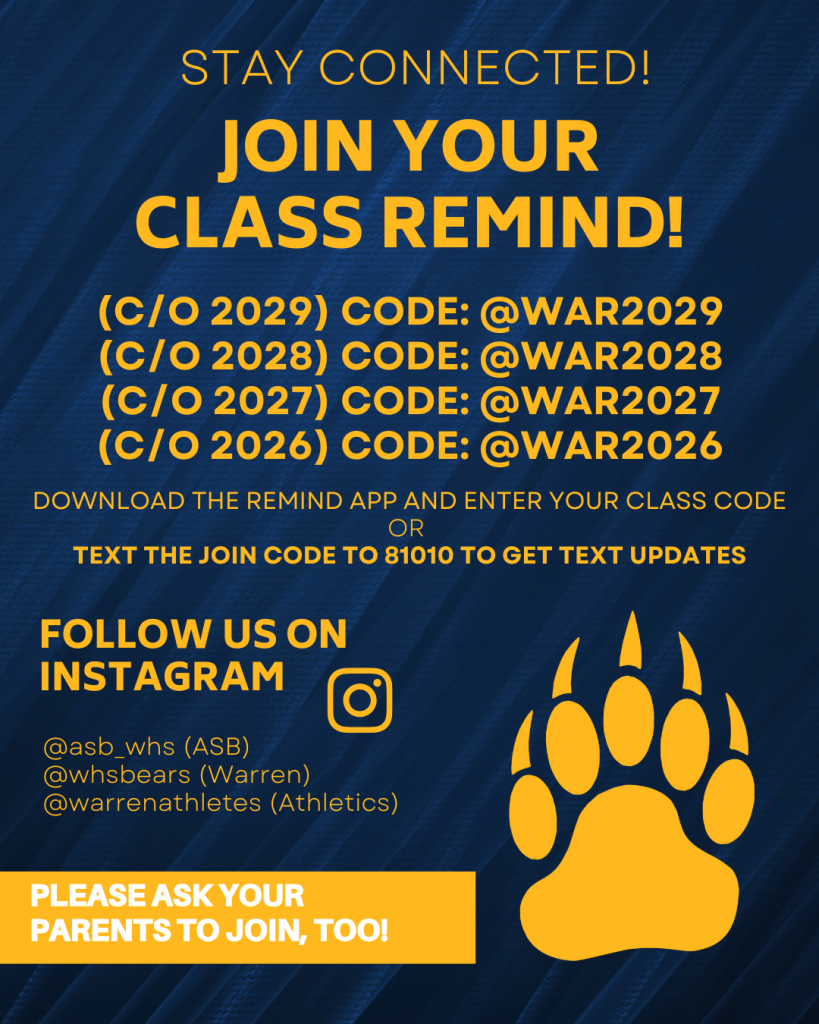 Don’t miss important updates, events, and announcements for your class! Signing up for Remind is quick and easy — and all parents and students are invited to join.