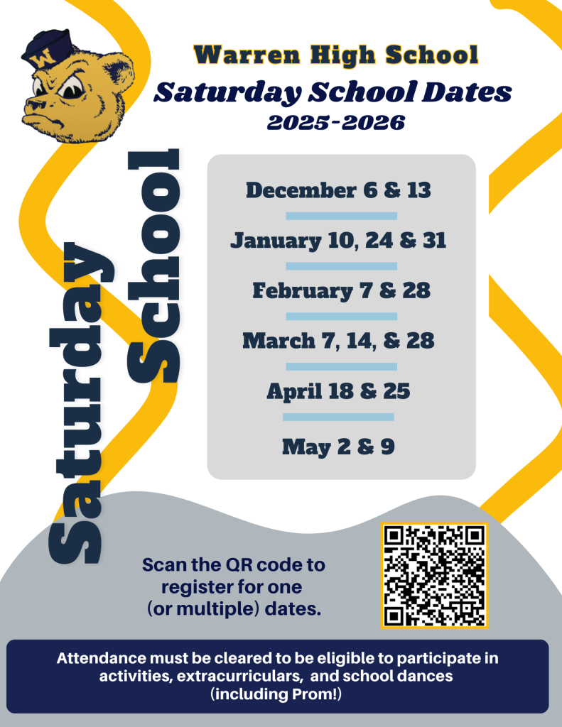 Below is a list of remaining Saturday School dates for the 2025-2026 school year:
