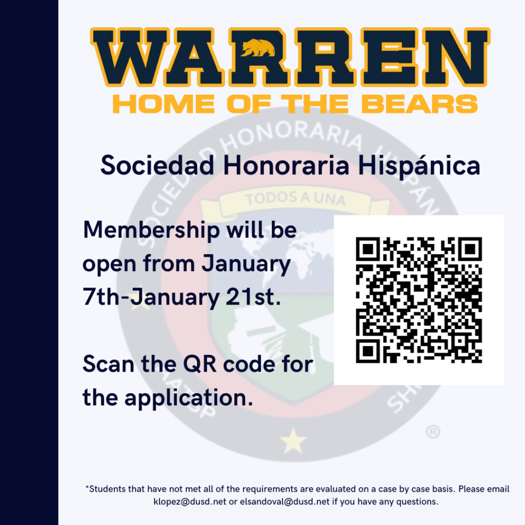 Warren High School is now accepting applications for the Sociedad Honoraria Hispánica. Membership is open from January 7th to January 21st.