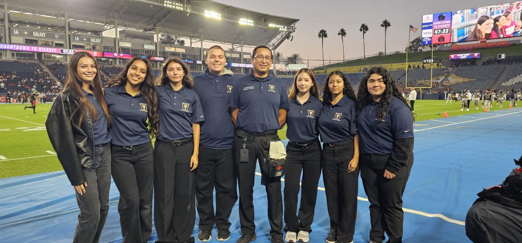 Beyond the classroom, the Sports Medicine program is known for giving students memorable experiences that help shape their learning and personal growth. Students traveled with the football team to Hawaii, where they supported athletes while experiencing the trip alongside the team. They attended the rivalry football game at Dignity Health Sports Park, walking through restricted professional areas and watching sports medicine doctors work behind the scenes. Earlier this year, the program participated in the Annual Sports Medicine Seminar at the Intuit Dome, where students were recognized as a new chapter of the National Honors Society of Sports Medicine before watching the Clippers and 76ers play. Looking ahead, students are preparing to compete for the first time in SkillsUSA at the state level and in the AACI Sports Medicine Competition in March and April 2026.