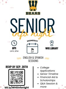 Senior parent information night providing an overview of graduation and A-G requirements, post-secondary options and financial aid information. Workshops begins at 6PM – RSVP by clicking here!